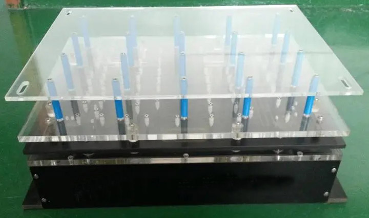 根据客户产品的规格及测试要求,可设计不同架构:翻盖、卡夹、夹锁、齿轮、曲柄、气动、真空等;单一式及复合型皆可,也有手动,半自动及PLC全自动可供选择。
